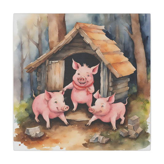 Matte Wall Canvas - Three Little Pigs - Nursery Rhymes Collection